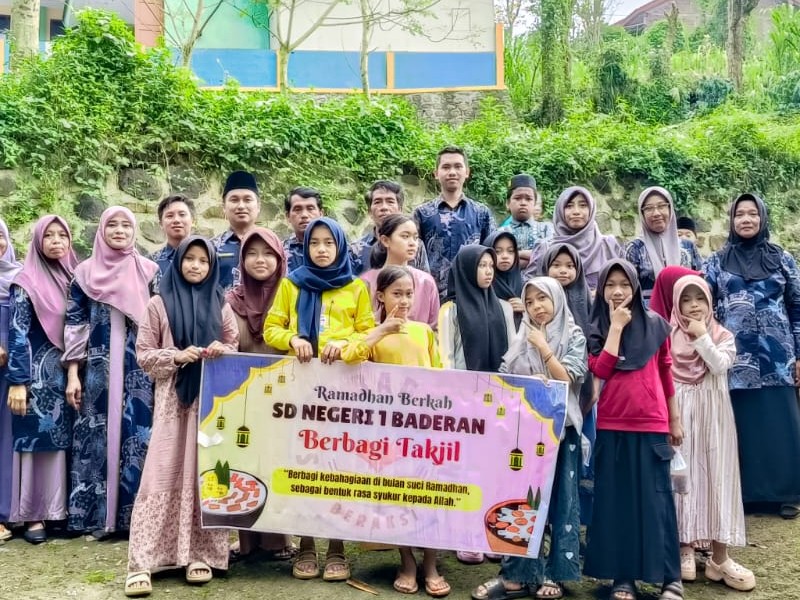 kegiatan pembagian takjil SD Negeri 1 Baderan